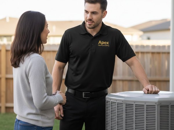 HPSC and CleanBC contractor talking to a client after A HEAT-PUMP INSTALLATION