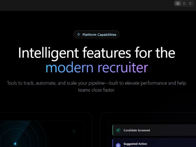 Full-width Tailwind CSS feature section showcasing six animated cards that highlight AI recruiting capabilities, with a gradient background, section header, and responsive grid layout for modern SaaS marketing pages.