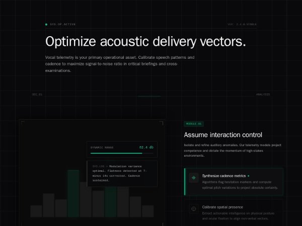 A dark, futuristic feature section built with Tailwind CSS, combining a headline, waveform-style dashboard visual, floating metric panels, and capability cards. Ideal for SaaS, AI, analytics, or cybersecurity landing pages.