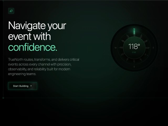 A dark, high-fidelity Tailwind hero section featuring animated copy, glowing accents, a shimmering CTA, and an interactive compass-style visual with real-time pointer feedback. Ideal for SaaS, infrastructure, or developer tooling landing pages.