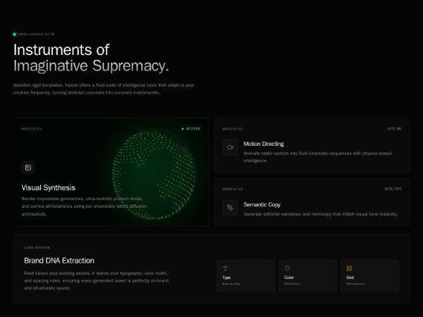Dark-themed Tailwind feature section showcasing an intelligence suite with a responsive card grid, animated globe canvas, hover states, and modular AI capabilities. Ideal for SaaS, AI product, or creative tech landing pages.