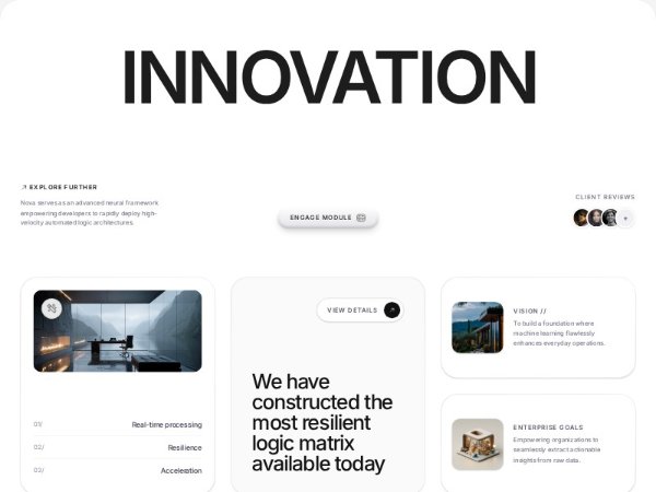 A premium Tailwind CSS hero section for an AI or SaaS landing page featuring oversized typography, review avatars, CTA buttons, and a three-column feature grid with editorial card styling.