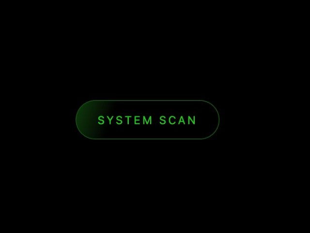 A stylized button labeled 'SYSTEM SCAN' featuring an overlaid scan-line div for potential animation effects. Suitable for dashboards, security tools, or system utilities requiring a prominent scan action trigger.