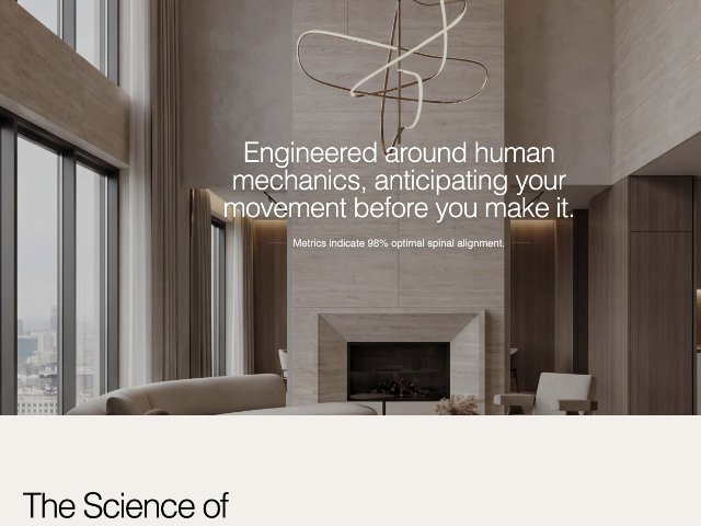 Full-width storytelling and science section featuring a hero-style posture message, scientific specifications, and interactive flashlight-effect image cards with scroll reveal animations. Ideal for product pages focused on ergonomics or technical storytelling.