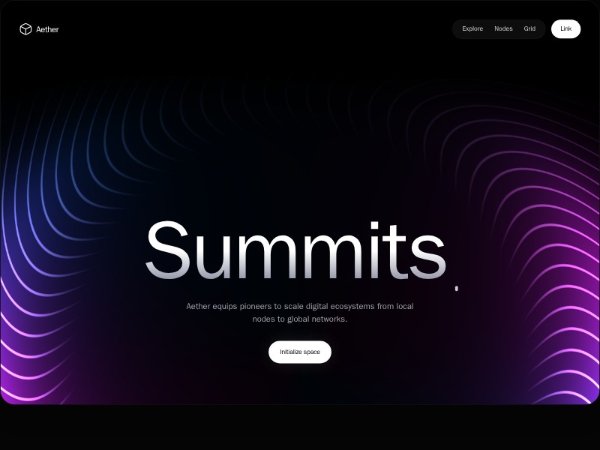A dark, animated landing hero featuring gradient headline text, navigation, CTA buttons, and a custom WebGL wireframe torus background. Built with Tailwind CSS and ideal for tech, startup, or digital ecosystem showcase pages.