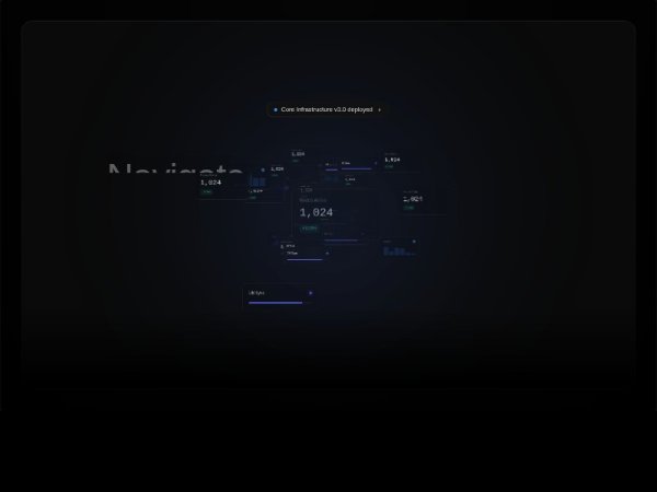 Dark futuristic hero section with a 3D telemetry tunnel, GSAP text reveal, parallax interaction, and dual CTA buttons. Built with Tailwind CSS and Iconify, ideal for SaaS, infrastructure, devtools, or platform landing pages.