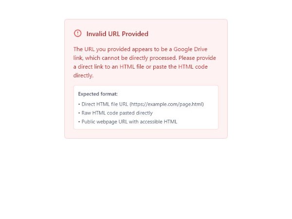 A simple error message component for displaying invalid URLs or missing content with basic styling.