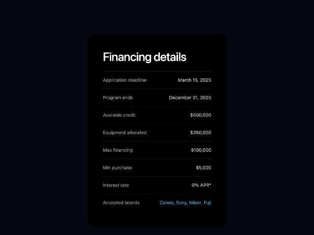 Financing Details Info Card