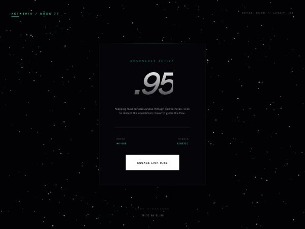 Full-screen cyberpunk hero section with interactive particle canvas background, animated stats, and CTA button. Uses Tailwind CSS and canvas for mouse-responsive particles and reactive UI text, suited for landing pages or experimental interfaces.
