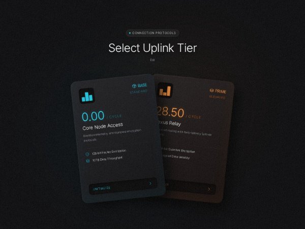 Futuristic pricing/plan selection section featuring two animated uplink tier cards, draggable interactions, WebGL noise background, gradient glows, typewriter header text, and Tailwind-based styling. Ideal for SaaS or app pricing/plan comparison pages.