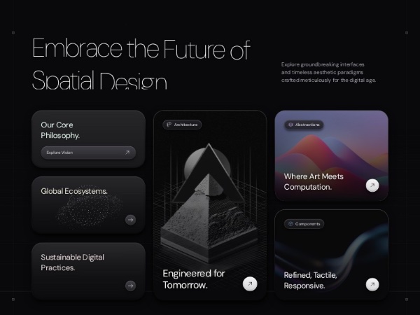 A full-width hero section with a premium bento grid layout, animated headline reveal, interactive glassmorphism cards, and Three.js WebGL background/globe effects. Built with Tailwind CSS, GSAP, and Iconify for modern landing pages.
