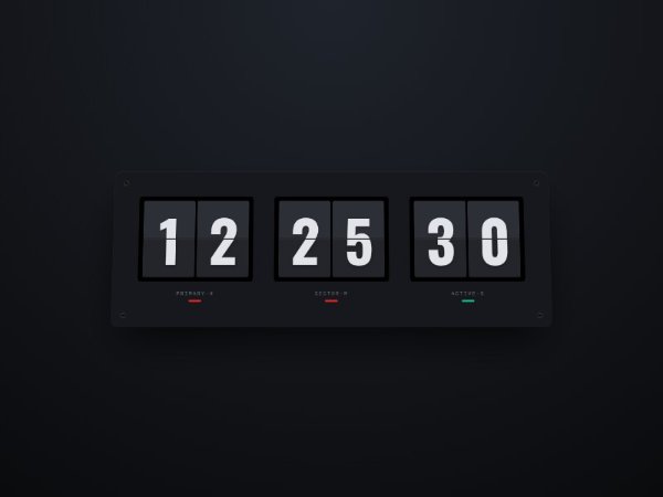 Animated 3D flip clock showing hours, minutes, and seconds with split flap-style digits. Uses custom CSS and Tailwind for a retro control-panel look, including status lights and responsive sizing. Ideal for dashboards, landing pages, or hero time displays.