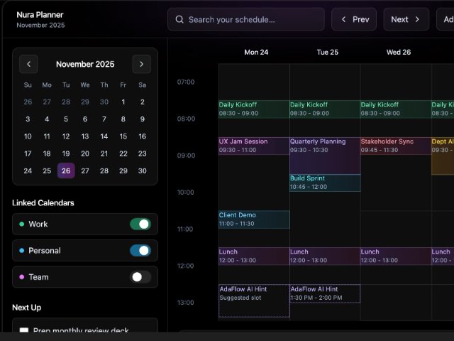 Weekly Calendar Dashboard with Sidebar & Controls | Aura