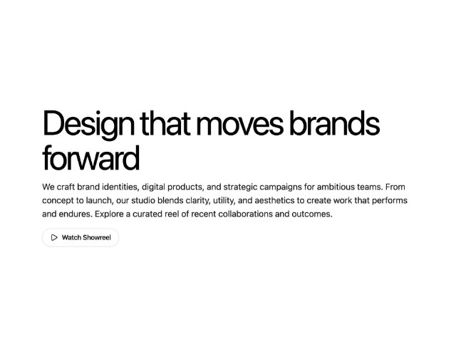 Hero section featuring bold headline, supporting text and icon-enhanced play CTA that links to a showreel. Styled with Tailwind CSS utilities, responsive typography, backdrop blur and hover effects. Suited for landing pages, portfolios and marketing sites.