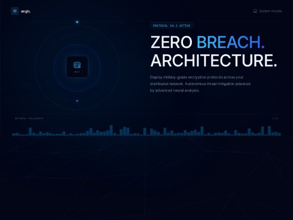 A full-width cybersecurity landing hero featuring animated headline reveals, orbiting server graphics, live data bars, cursor glow, and a Three.js wireframe background. Built with Tailwind CSS, GSAP, and Iconify for premium SaaS or security product pages.