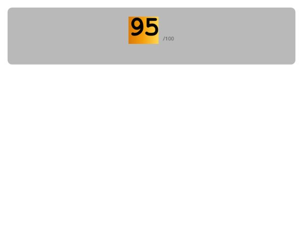 Large animated score display that counts up with smooth easing and dynamically changes colors based on score ranges. Includes status label with fade-in effect.