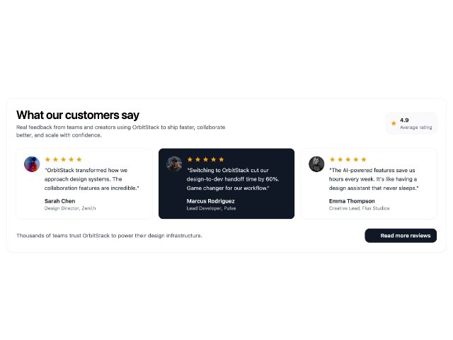 Testimonials Grid Section with Rating and CTA