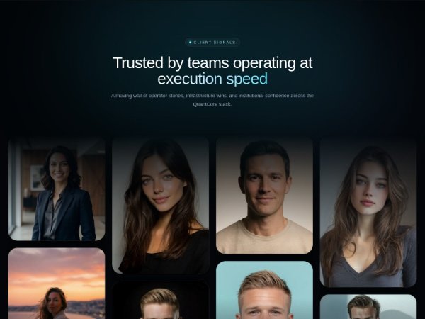 Dark-themed testimonial section with vertically scrolling image cards, hover-reveal quotes, and a mobile horizontal carousel. Built with Tailwind-style utilities and custom CSS animations for showcasing client stories and social proof.