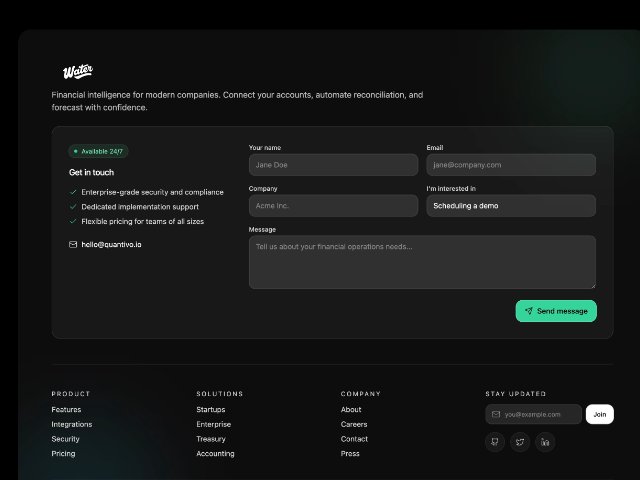 Responsive SaaS Footer with Contact & Newsletter
