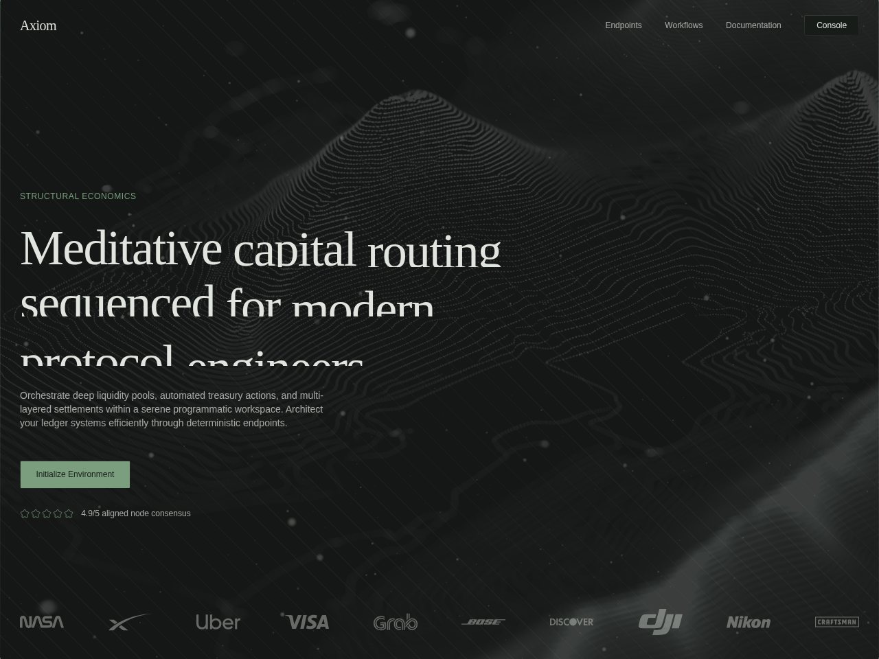 Axiom Endpoints Workflows Documentation Console Structural Economics Meditative capital routing sequenced for modern protocol engineers Orchestrate deep liquidity pools, automated treasury actions, and multi-layered set…
