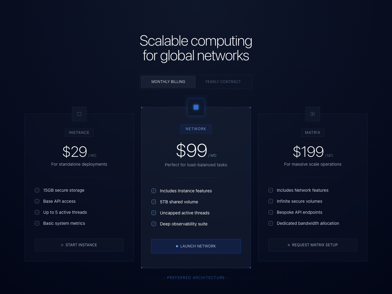 Scalable Computing Tiers is a Neuform Pro template imported as a reusable Aura DESIGN.md system.