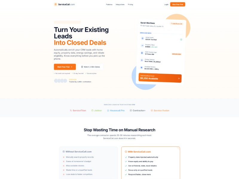 Contractor Lead Enrichment SaaS Landing Page Template | Aura