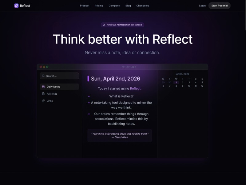 Reflect Note-Taking SaaS Landing Page Template | Aura