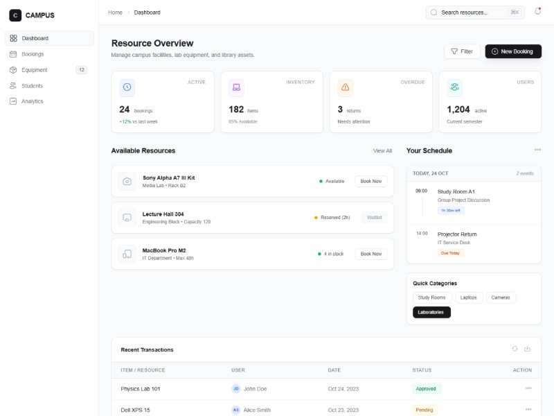 Campus Resource Manager Dashboard Template | Aura