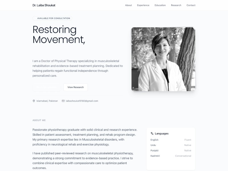 Physical Therapist Portfolio Website Template | Aura