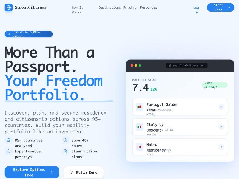 GlobalCitizens Freedom Portfolio Landing Page Template | Aura