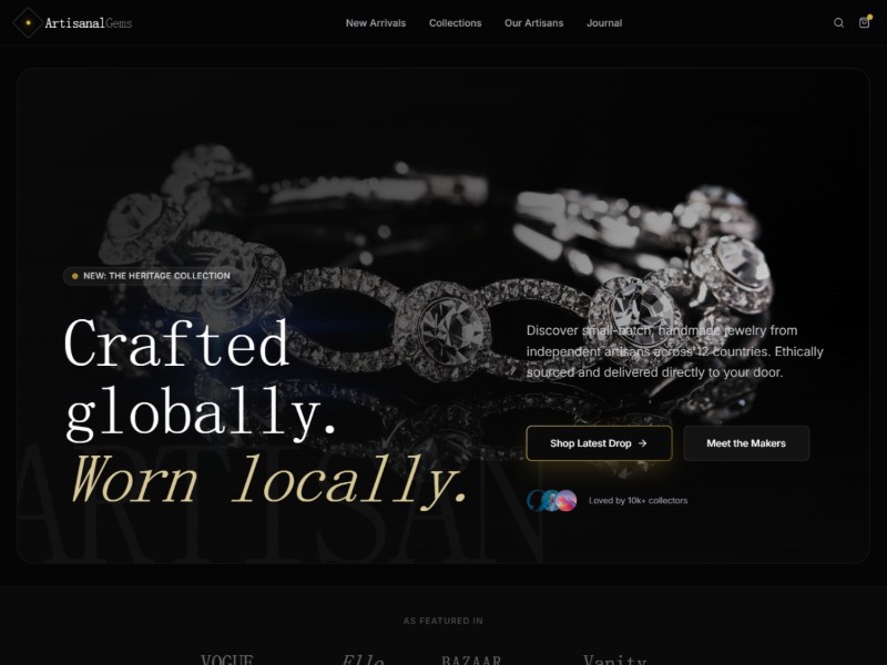 Artisanal Jewelry E-commerce Landing Page Template | Aura