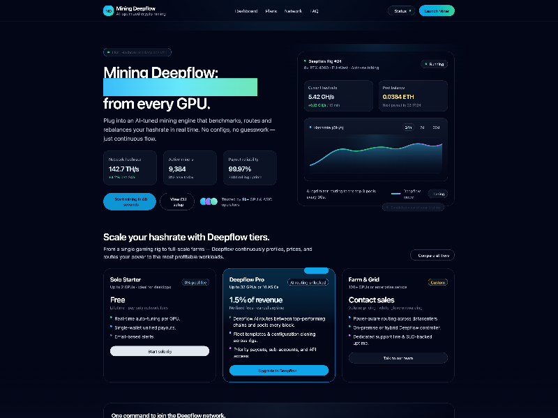 Mining Deepflow Crypto Mining Dashboard Template | Aura