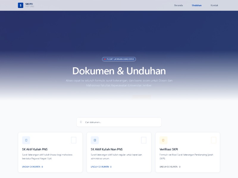 A focused, Indonesia-ready template for hosting academic documents, forms, and service requests in one centralized hub.
