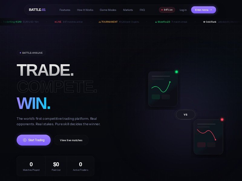 Primary use case: promoting a crypto or fintech platform where traders compete head-to-head or in tournaments.