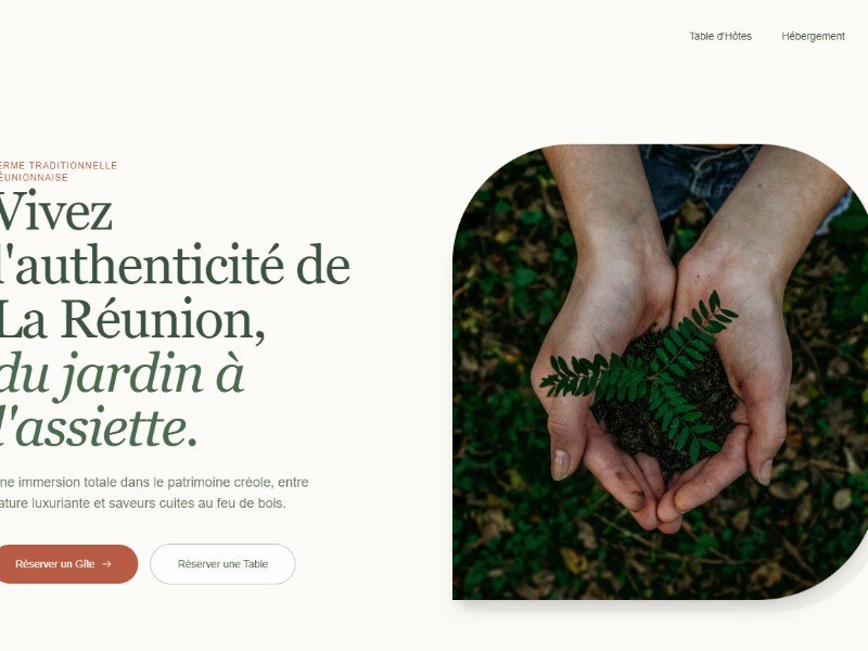 A warm hospitality template for farm stays, rural lodges, and table d’hôtes experiences to showcase lodging, local cuisine, and cultural immersion.
