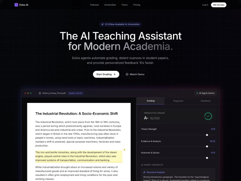 Primary Use Case: Ideal for EdTech founders or product teams to showcase an AI-powered grading or academic assistant product and capture educator interest.
