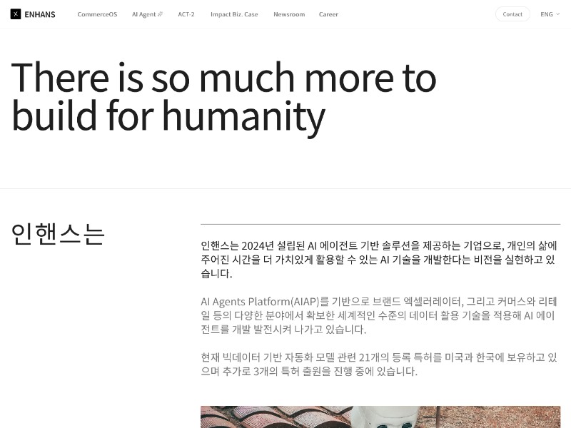 A sleek, minimal landing page template inspired by ENHANS, built to present an AI or technology company’s vision, culture, and open roles.