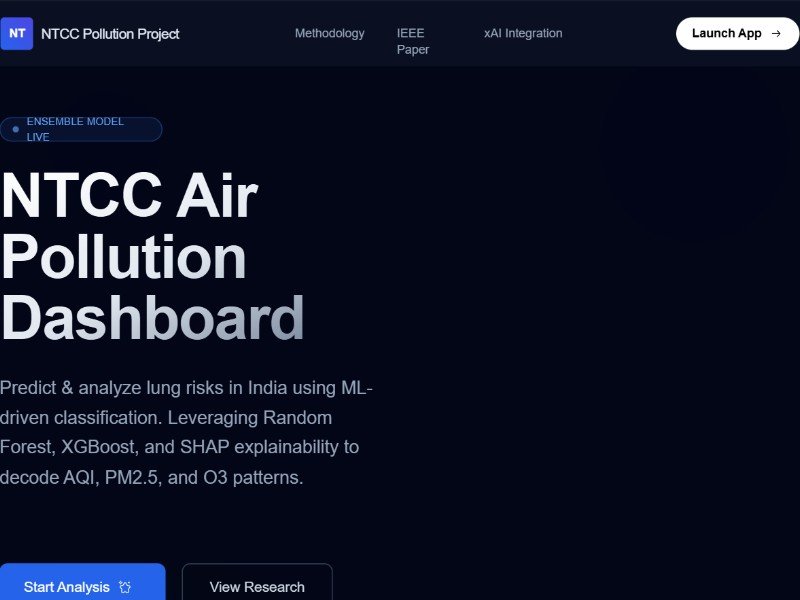 A reusable dark-mode AI dashboard template for air pollution analysis with maps, ML insights, and SHAP explainability for environmental and research projects.