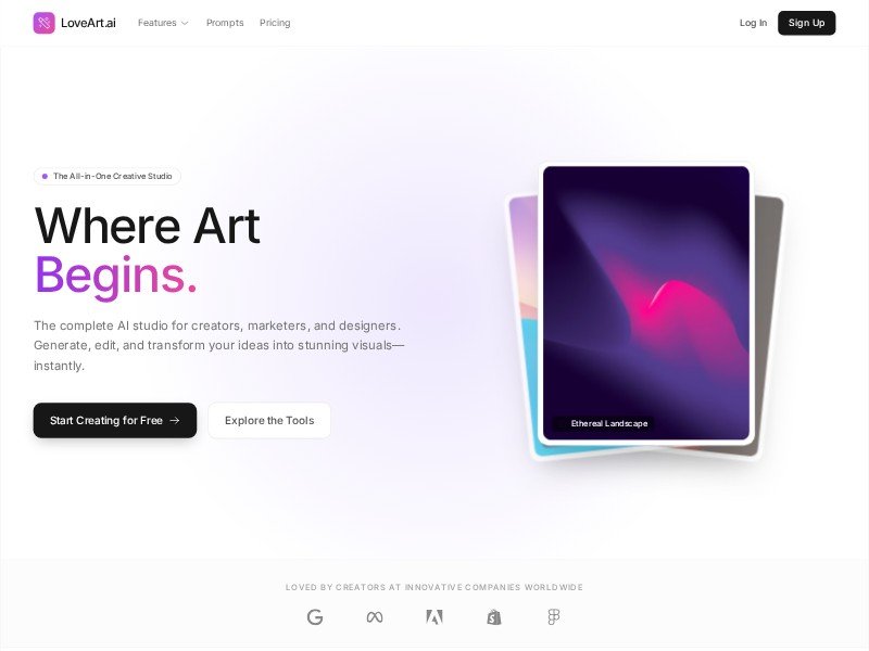 Ideal for launching an AI creative studio, visual generation app, or modern design-focused SaaS product.