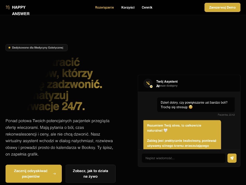 A premium landing page template for aesthetic medicine clinics promoting an AI assistant that educates patients, answers FAQs, and turns after-hours interest into booked appointments.