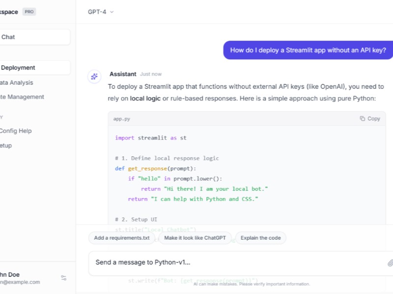 Ideal as a starting template for AI assistants, developer tools, customer support bots, or internal productivity chat apps that need a modern, production-ready interface.