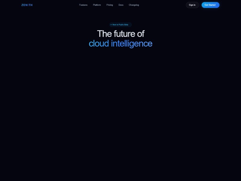 A sleek, dark-mode landing page template for AI cloud platforms focused on speed, scale, and developer trust. Ideal for showcasing infrastructure, deployment workflows, pricing, and enterprise readiness.