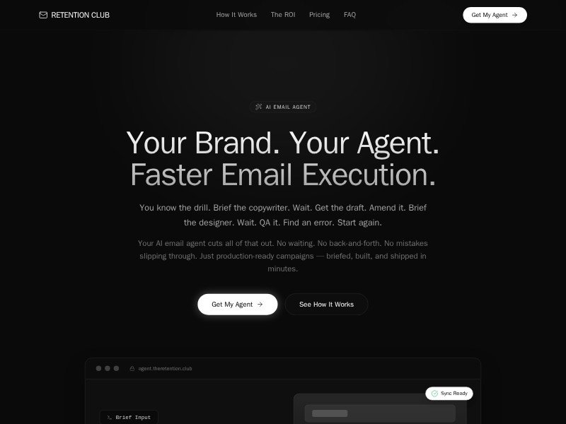 Primary use case: Launch a high-converting marketing page for an AI email agent, retention service, or email automation offer aimed at fast-moving brand teams.