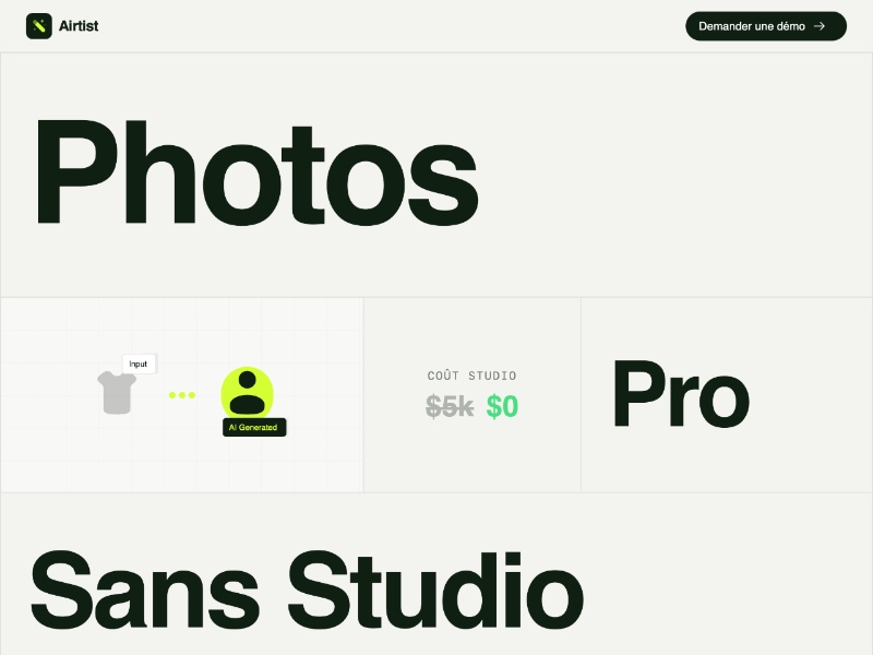 A modern landing page template for Airtist, an AI mannequin generator for Shopify stores, designed to showcase features, benefits, and demo lead capture.