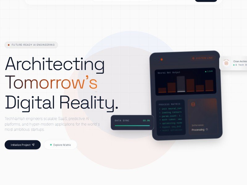 A bold, futuristic landing page template for AI engineering studios, digital product agencies, and modern tech consultancies that want to present capabilities with confidence.