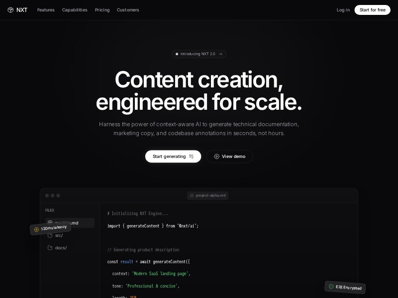 Perfect for launching next-gen AI tools, documentation platforms, or technical marketing services.