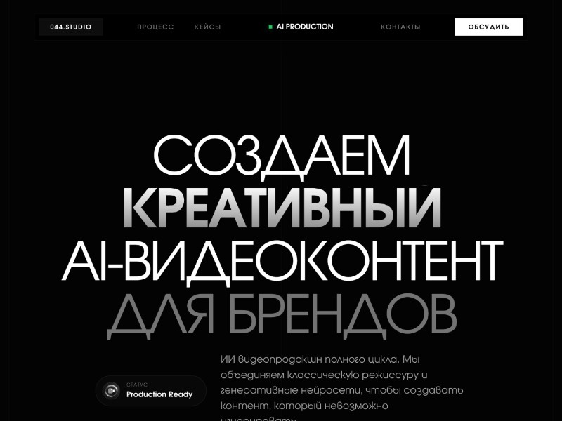 A dark, cinematic one-page template for AI-driven video studios and creative agencies.