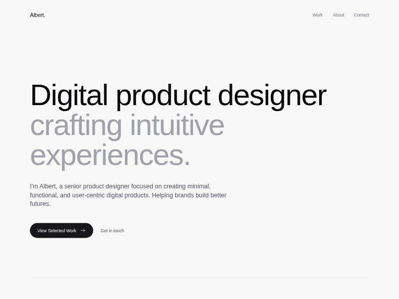 A refined portfolio template for product designers who want to present their work, capabilities, and contact details with clarity and confidence.