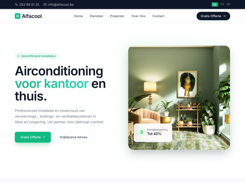 Ideaal als template voor HVAC-, sanitair- en duurzame-energie-installateurs die snel een professionele, conversiegerichte marketingpagina willen lanceren.