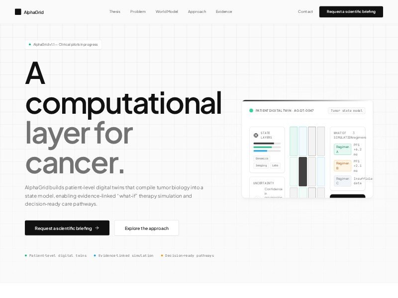 A narrative-rich landing page template for oncology or healthtech startups to explain complex computational platforms in clinician-friendly language.